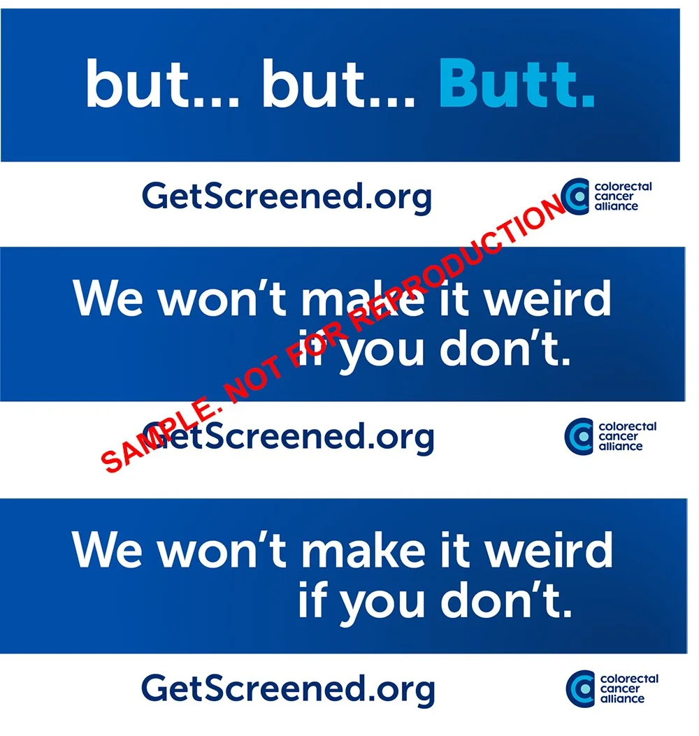 Getting screened could save your life. To encourage more people to take action and stop making excuses, CCA has launched this OOH PSA campaign - to learn more go to GetScreened.org.